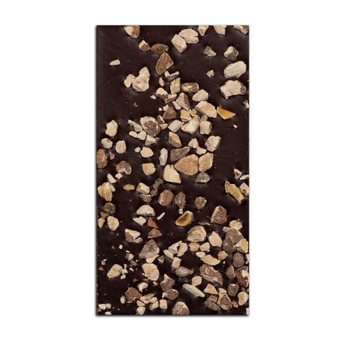 Our 60% Dark Almond chocolate bar is a perfect fusion of smooth, artisan chocolate and nutty crunch, creating an indulgence that's rich in taste and incredibly smooth in texture.